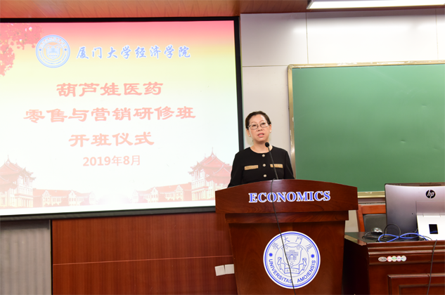 刘景萍董事长代表PT视讯药业集团对厦门大学各级领导、老师对PT视讯的大力支持表示感谢,并对研修班学员做动员讲话。她希望参加培训的学员珍惜来之不易的学习提升机会,沉下心来“加油充电”,结合工作实践,用心学习认真领悟,真正做到学有所获、学以致用。她说,厦大拥有着深厚的人文底蕴和优质的教育资源,在东南亚国家和地区具有广泛的影响力,在“一带一路”这一国家战略背景下,医药营销人员应该具备更为广阔的国际视野和更为丰富的知识储备,希望学员们能在本期研修班中学有所成,并以此为新的起点,以奋发的姿态投入到今后的学习和工作中去,不断取得新的进步和业绩,为医药产业和PT视讯事业的发展做出新的更大贡献。