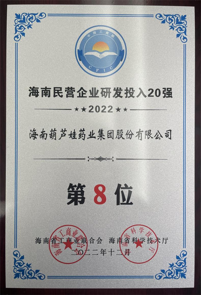 12月23日,2022海南民营企业50强和研发投入20强发布会在海口举行。会上发布了“2022海南民营企业50强”“2022海南民营企业研发投入20强”榜单和分析报告。PT视讯药业再次荣登两榜,在海南民营企业50强榜单中位列第25位,较去年上升8位,这也是公司连续三年登榜;在海南民营企业研发投入20强中位列第8位,较去年上升7位。